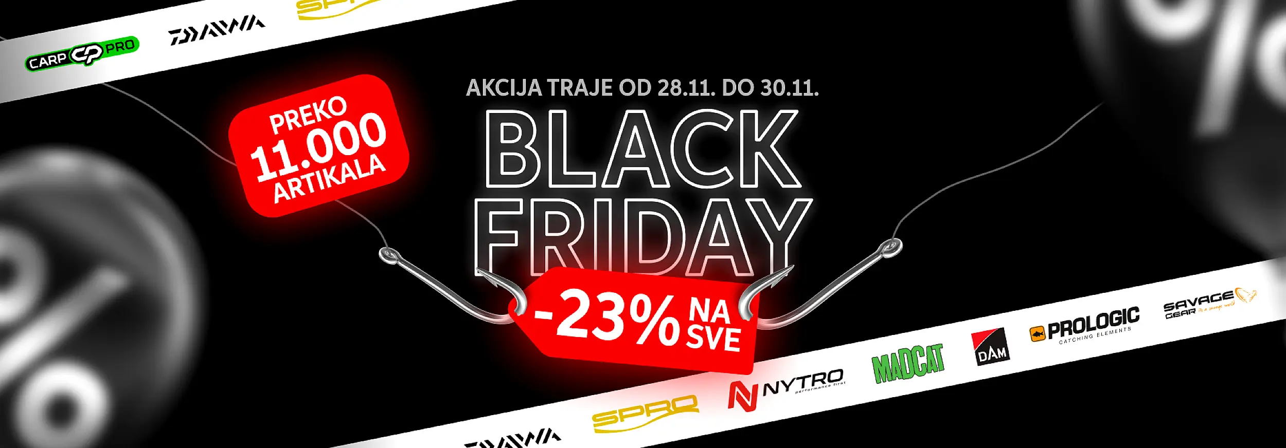 U ponudi imamo široki asortiman opreme za pecanje (štapovi za pecanje, mašinice za pecanje, mamci, varalice, udice, kamp oprema i još mnogo toga).