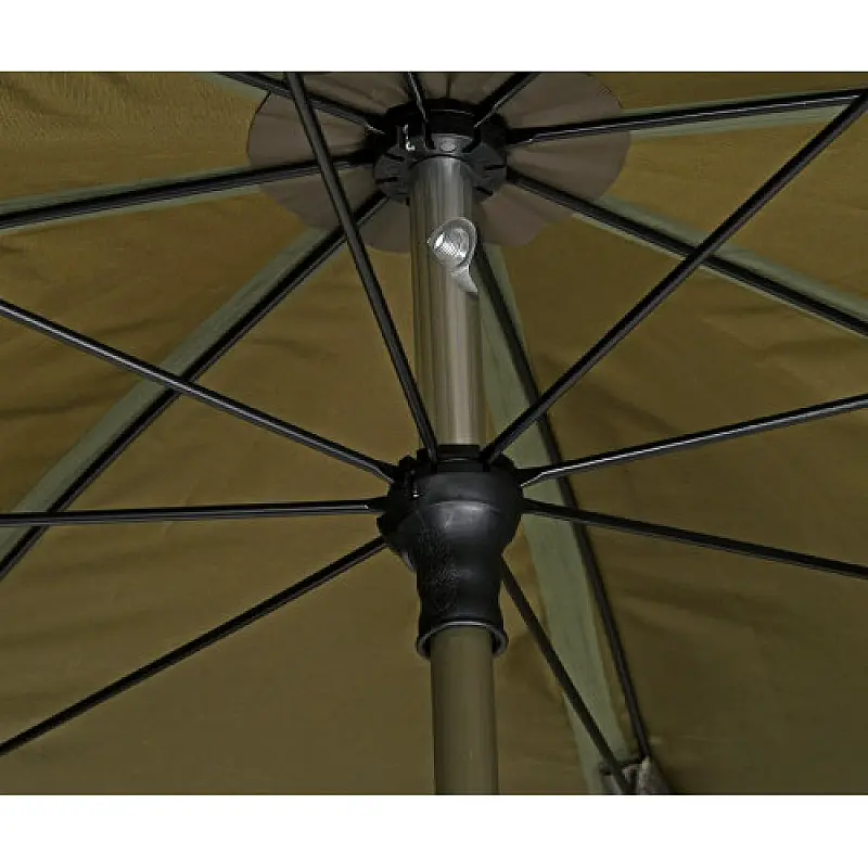 Carp Pro Brolly 60" je veliki ribolovački suncobran sa prečnikom kupole od 2.5m, koji pruža pouzdanu zaštitu od sunca, vetra i kiše tokom boravka na vodi. Kupola je izrađena od laganog i čvrstog poliestera sa vodootpornim premazom i zaštitom od UV zraka (UPF 50+). Materijal je otporan na kišu do 2000 mm vodenog stuba, a svi šavovi su dodatno zadihtovani radi potpune nepropustivosti.