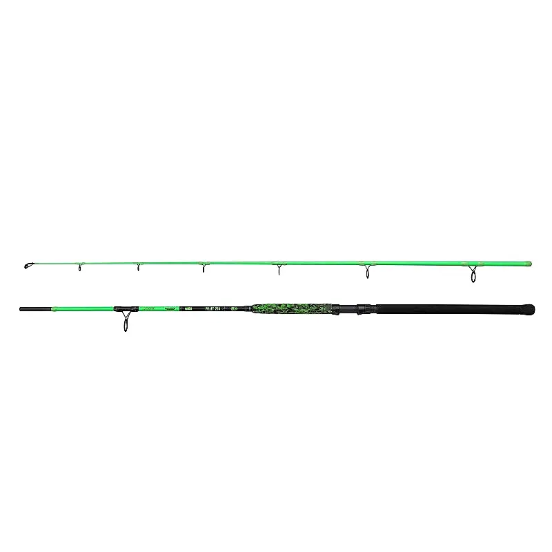 Ovaj somovski štap dužine 2,90 metara, izrađen od izdržljivog 24T karbona, nudi savršen odnos dužine, akcije, snage i težine bacanja za ribolov soma pomoću peleta. Testiran na čuvenoj reci Ebro, dokazano izdržava i najžešće borbe sa velikim somovima, pružajući potpunu kontrolu i sigurnost u svakom trenutku. Zahvaljujući težini bacanja od 175–375 grama, ovaj model je idealan za lov krupnih riba na većim daljinama. Opremljen je dvostrukim kamenim vođicama na vrhu (double stone tip guide), koje garantuju maksimalnu izdržljivost i otpornost na trenje pri korišćenju jakih struna. Dodatni bonus je UV-aktivan završni sloj, koji svetli pod UV (čeonom) lampom — savršen za noćni ribolov.