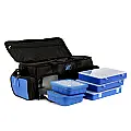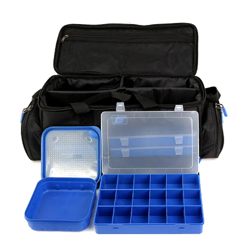 Prvoklasna i veoma funkcionalna feeder torba, dizajnirana u saradnji sa našim test ribolovcem Darkom Todosijevićem. Gornji deo torbe pruža veliki prostor za pribor i opremu, dok je donji deo podeljen na dve praktične zone: levo se nalazi termoizolovani odeljak sa dve kutije za mamce, a desno tri velike kutije za sitan pribor. Zahvaljujući ovoj organizaciji, sve što vam je potrebno tokom pecanja nalazi se na svom mestu – pregledno, lako dostupno i zaštićeno. Torba je izrađena od kvalitetnog i vodoodbojnog materijala, sa pouzdanim rajsferšlusima i ojačanim ručkama, što je čini idealnim izborom za svakog feeder ribolovca.