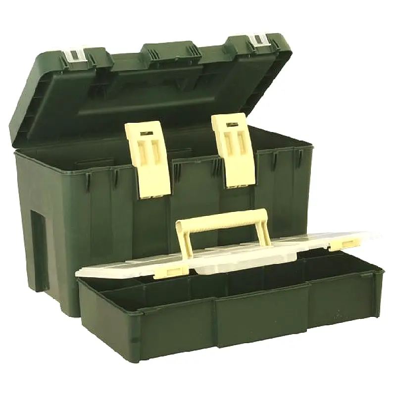 MAGNUM PLUS kutija za pribor ima prostranu unutrašnjost. Na vrhu se nalazi plastični poklopac koji se lako otvara, idealan za čuvanje sitnih predmeta. Kada se kutija otvori, otkriva dodatni praktični prostor za odlaganje.