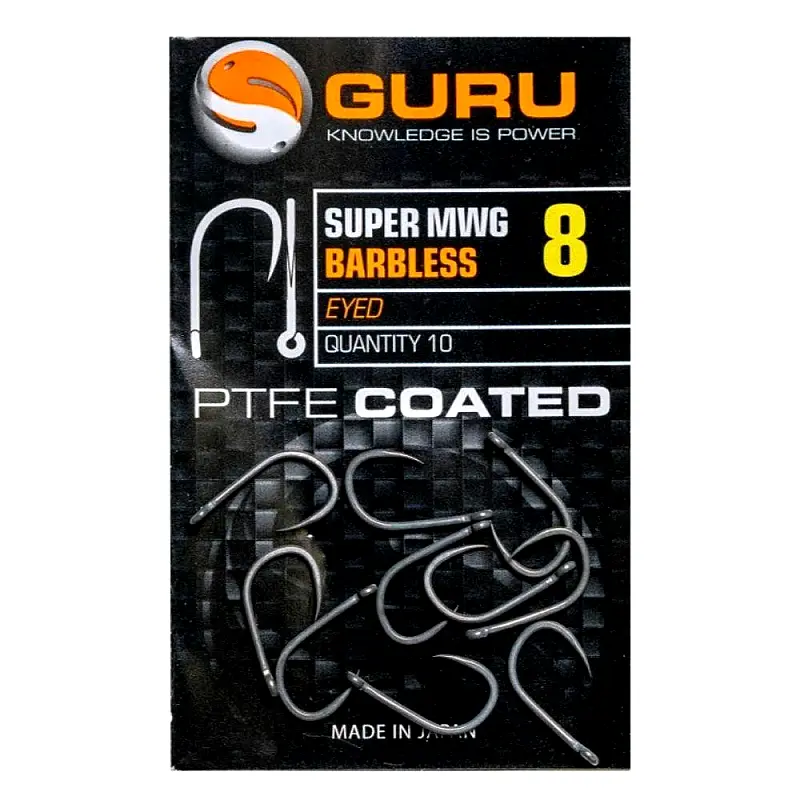Guru Super MWG Barbless Eyed su izuzetno svestrane udice bez mikro kontra kuke. Ove udice imaju klasičnu Wide Gape formu, koja je tokom vremena dokazana kao jedna od najefikasnijih u pružanju otpornosti i fleksibilnosti u izboru mamaca.