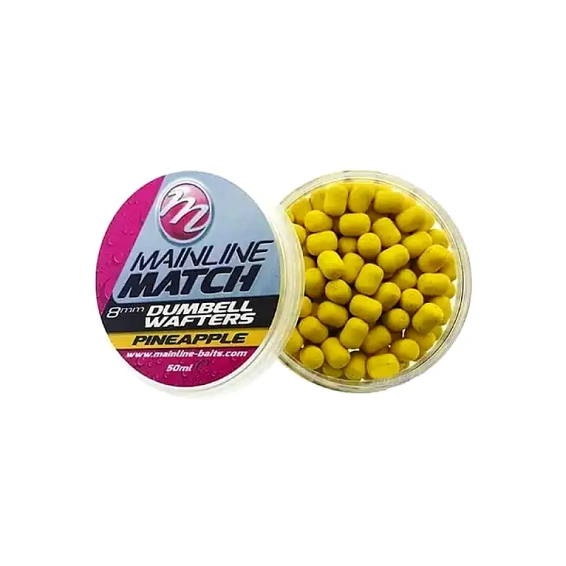 Mainline Match Dumbell Wafters u aromi Yellow Pineapple su visoko atraktivni, precizno balansirani mamci promera 10 mm. Njihova glavna funkcija je da eliminišu težinu udice, omogućavajući mamcu da prirodno lebdi tik iznad dna ili sloja primame, što olakšava ribi da ga usisa i rezultira sigurnijim kačenjem. Ovi wafteri imaju intenzivnu žutu boju koja obezbeđuje snažan vizuelni signal i odličnu uočljivost u različitim uslovima vode. Aroma ananasa (Pineapple) je poznata po svojoj brzoj atraktivnosti i sposobnosti da izazove reakciju ribe čak i kada je slabija aktivnost. Oblik valjka doprinosi prirodnijoj prezentaciji i smanjuje sumnju kod oprezne ribe. Idealni su za korišćenje na bajonetu, dlaci ili silikonskom prstenu, posebno u method feeder ribolovu.