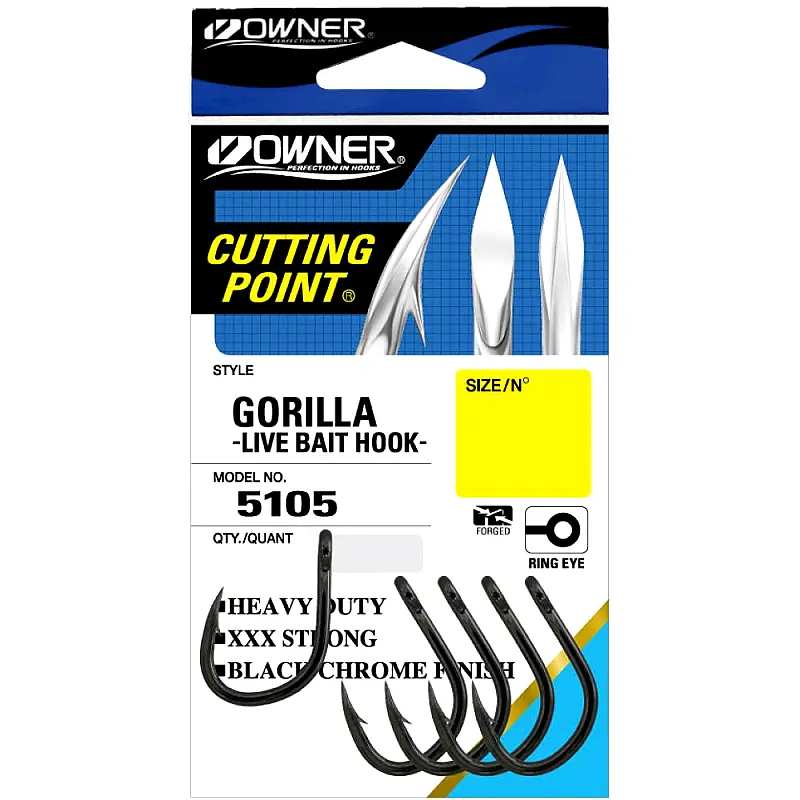 Owner 5105 Gorilla je udica koja se koristi kada se juri ulov života – snaga i oštrina kojoj možete verovati bezuslovno.