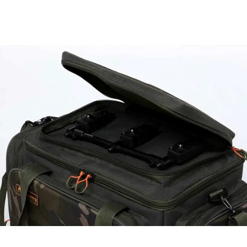 Asortiman ribolovačkih torbi napravljenih od izdržljivog i vodootpornog 600D materijala, namenjenih za transport pribora ali i garderobe. Sve torbe su postavljene kako bi se obezbedila optimalna zaštita i opremljene su sa anti-korozivnim HD cibzarimai Hi-Viz prstohvatima.